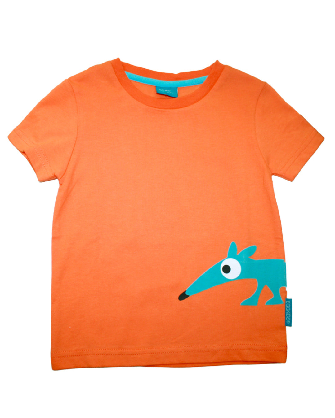 Das orange farbene Shirt ANTON aus Baumwolle mit der lustigen Dackelmama und dem kleinen Dackelkind von Eggkids ist ein MUST HAVE.