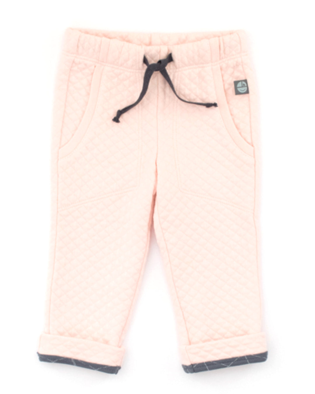 Die Baby Hose ist aus einem kuscheligen, wattierten Steppstoff genäht.